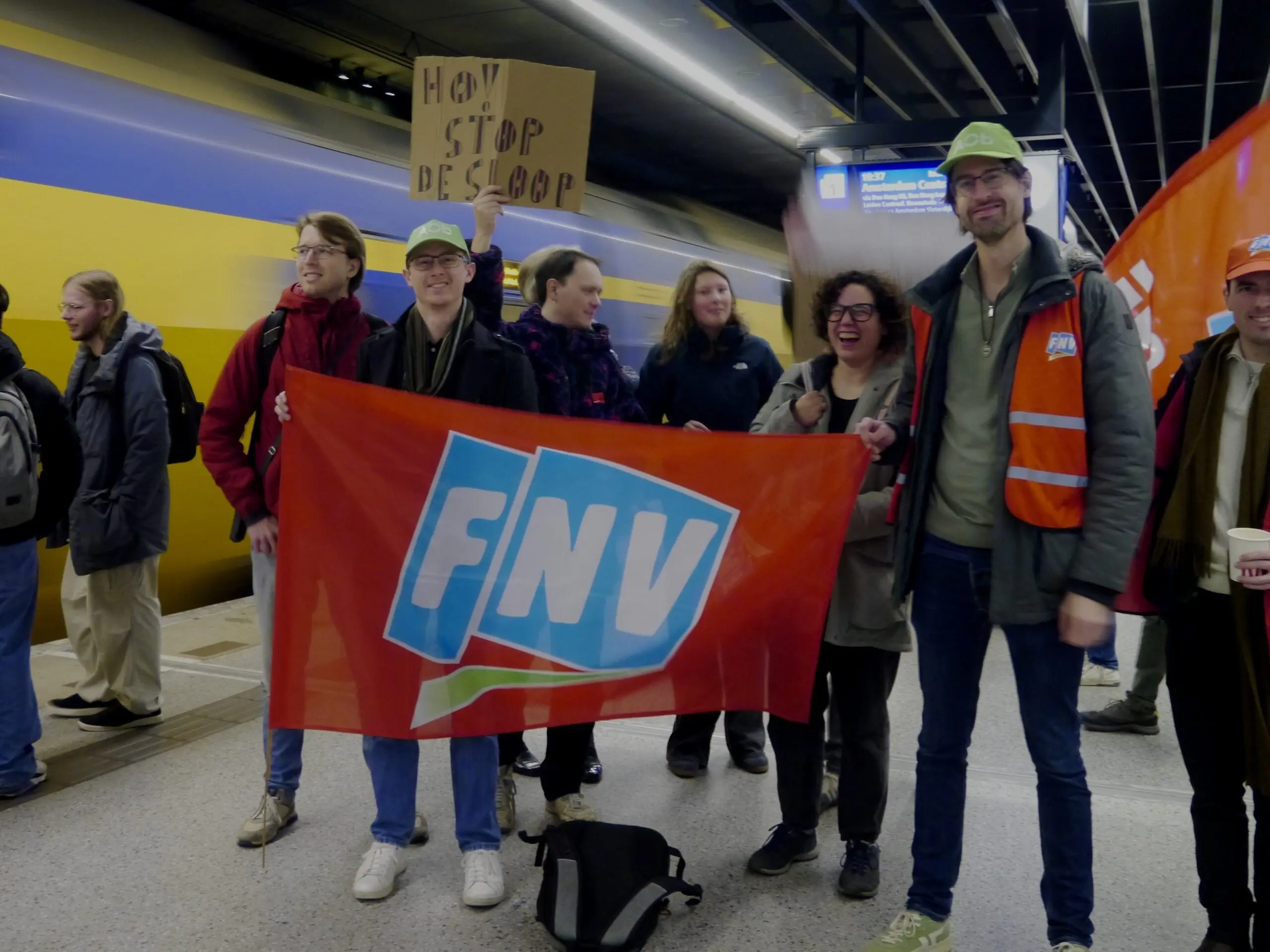 Hij verwacht zo’n honderdvijftig TU’ers op de Dam, zegt hij. Naast het elftal dat zich verzamelt op station Delft, dus nog zo’n honderdveertig mensen die op andere manieren naar Amsterdam komen. Daar is om 12.00 uur een programma begonnen met sprekers van verschillende universiteiten en politieke partijen. De dag is een vervolg op de staking op het Malieveld een jaar geleden, en de estafettestaking op de TU dit voorjaar.