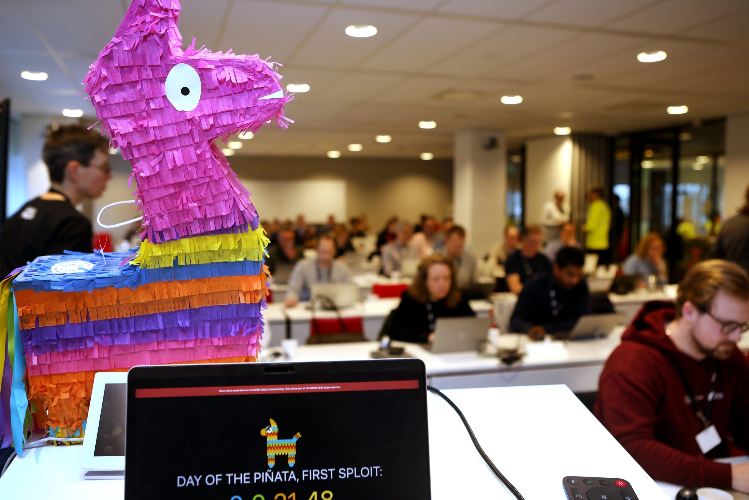 Bij Surf loopt ook iemand met een politiepet rond, alsof hij agentje speelt. Het geeft de dag iets luchtigs, door alle serieuze spanning heen. Als de instellingen aangifte willen doen, komen ze bij hem uit. In het echte leven blijkt hij het hoofd van het team Security awareness, dat de oefening organiseert. “Ik observeer nu vooral.”