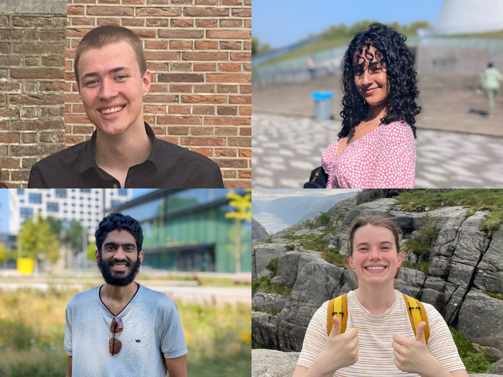 Kloksgewijs vanaf linksboven: IJsbrand, Dorsa, Aqdas, Siri. (Foto's: Kim Bakker en privécollecties IJsbrand en Siri)
