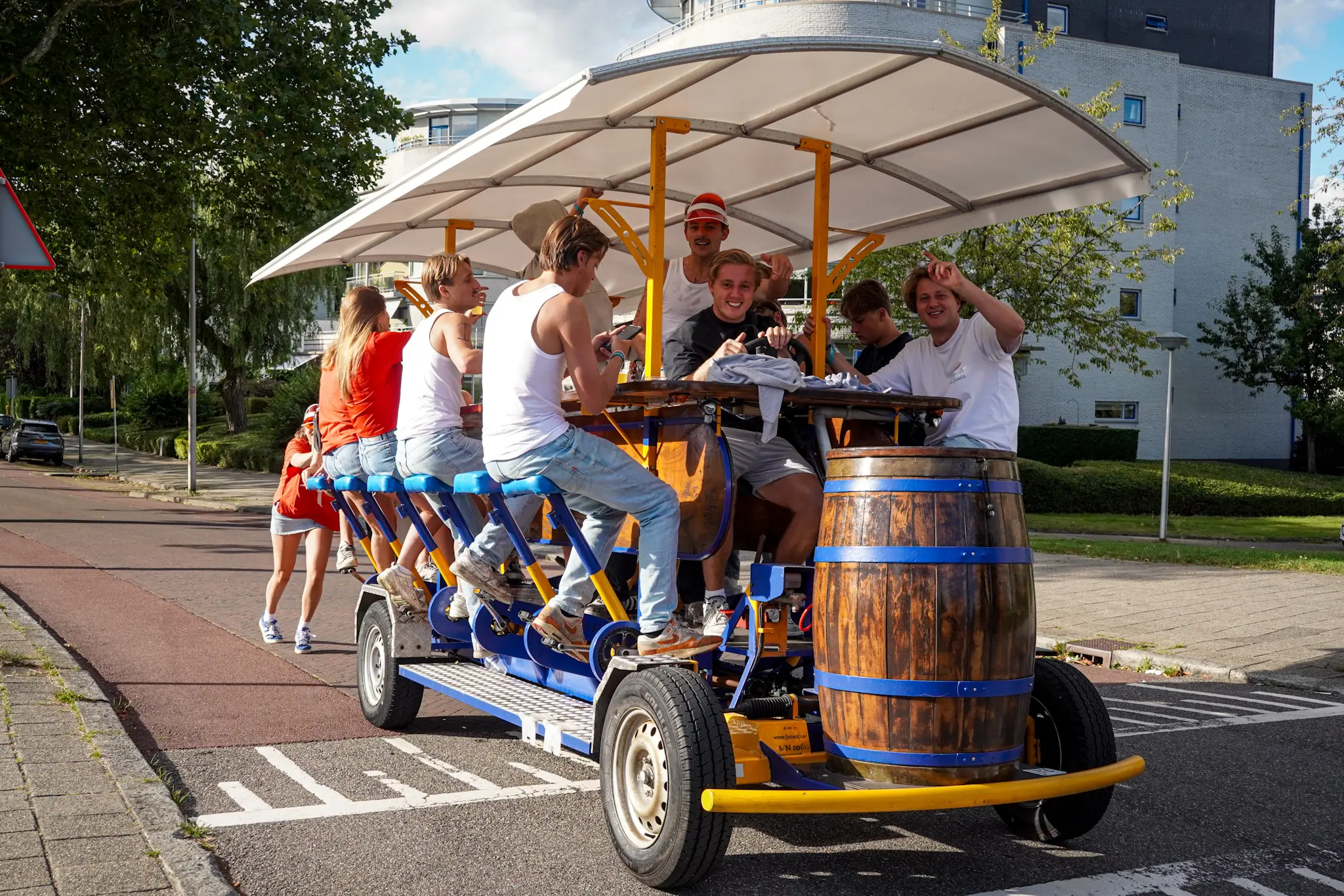 Wat in de toeristische binnenstad van Amsterdam veel gevaarlijke situaties opleverde, kan in Delft gewoon wel tijdens de OWee: een ritje op de bierfiets.