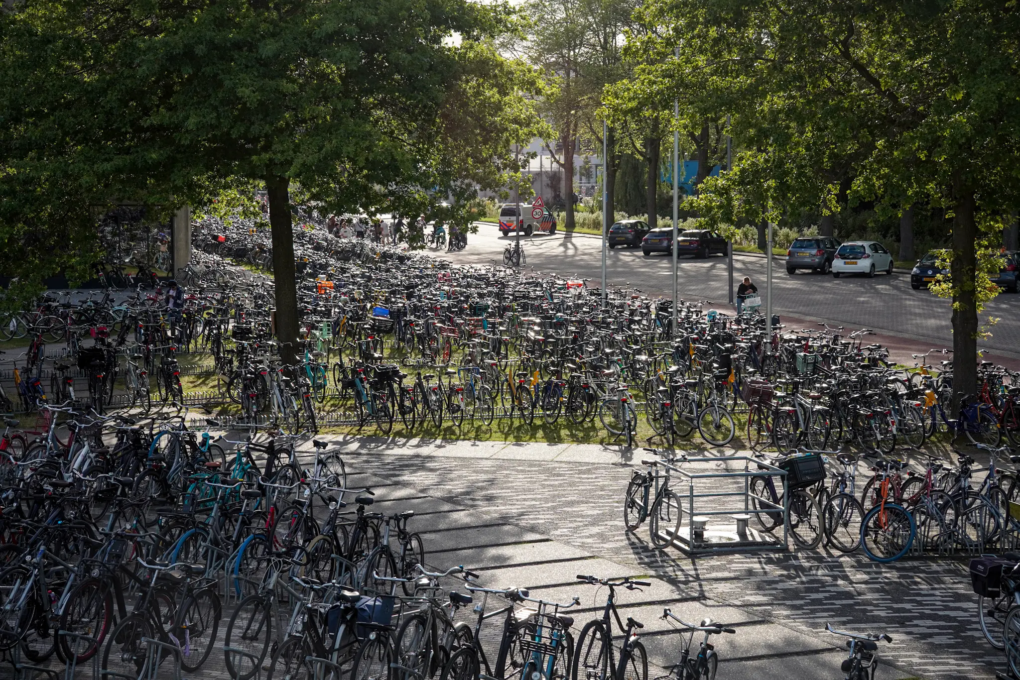Drieduizend deelnemers betekent ook zo’n drieduizend fietsen extra in de stad. Nadat honderden van hen naar de campus waren getoogd voor de cantus, waren alle stallingen gevuld.