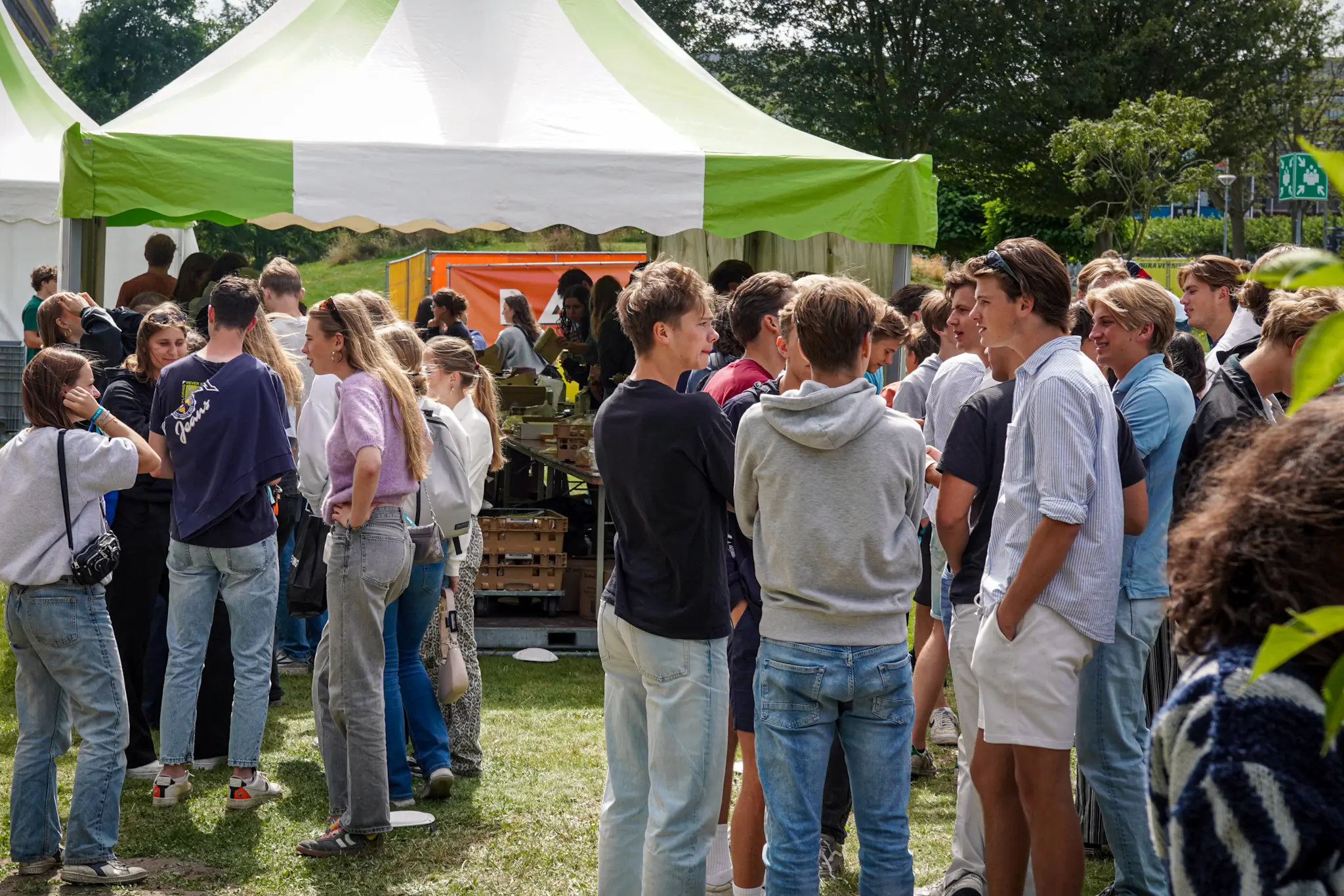 Lange rijen voor de brunch op het Basecamp in het Mekelpark.