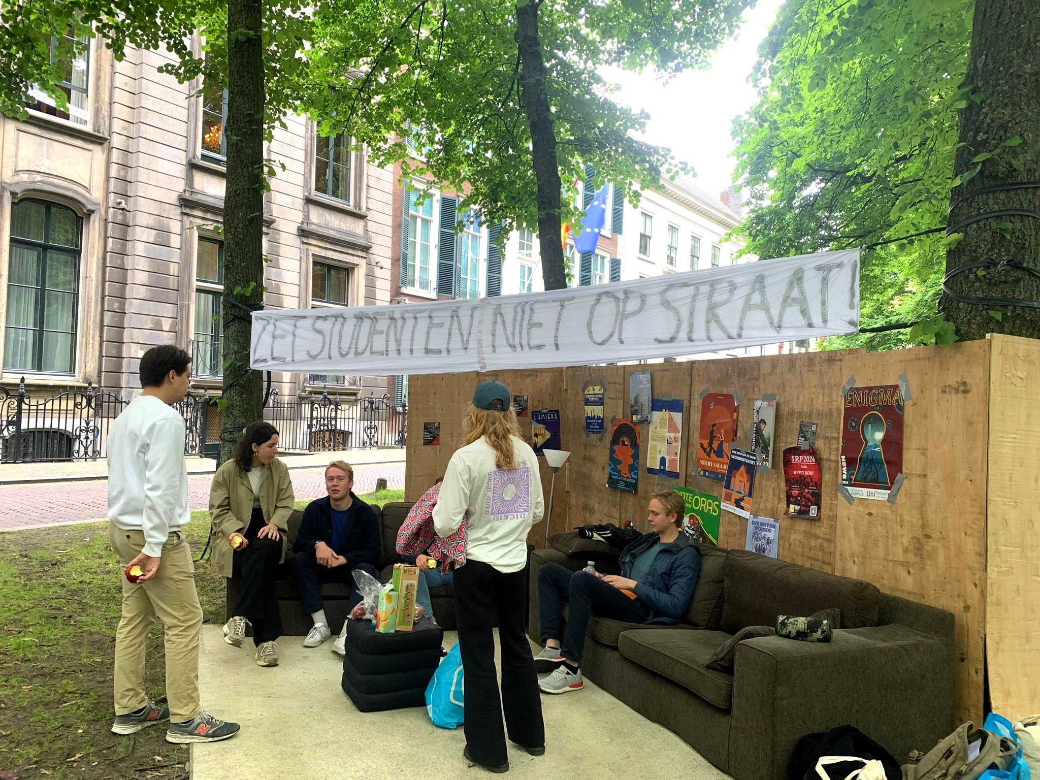 Om het protest kracht bij te zetten werd een studentenhuis opgetuigd (zie foto). Eerder stuurden de studenten al een brief aan de Eerste Kamer, Tweede Kamer en verschillende ministeries waarin ze hun zorgen uitten over de voorgenomen wet.