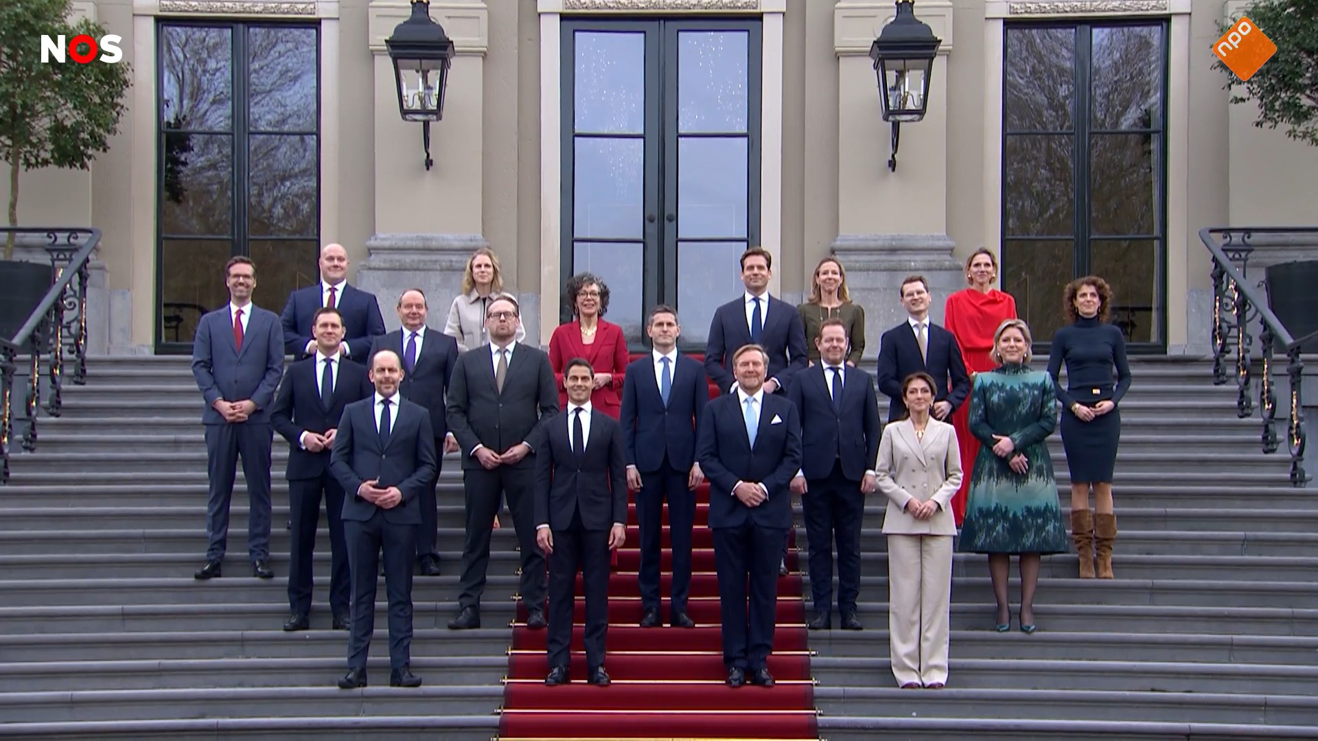 The Jetten cabinet on the palace steps. (Screenshot: NOS)