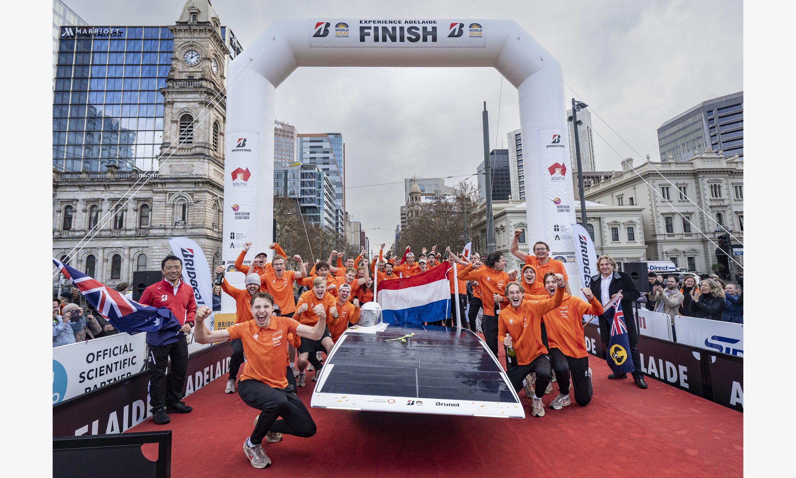 After a race of 34 hours, 54 minutes and 21 seconds and a close final sprint, the TU Delft students team crossed the finishing line in their Nuna 13 solar car in Adelaide, Australia, on Thursday 28 August. In doing so, the team won the Bridgestone World Solar Challenge 2025. And this win is in an anniversary year in which the Team turns 25 years old.
