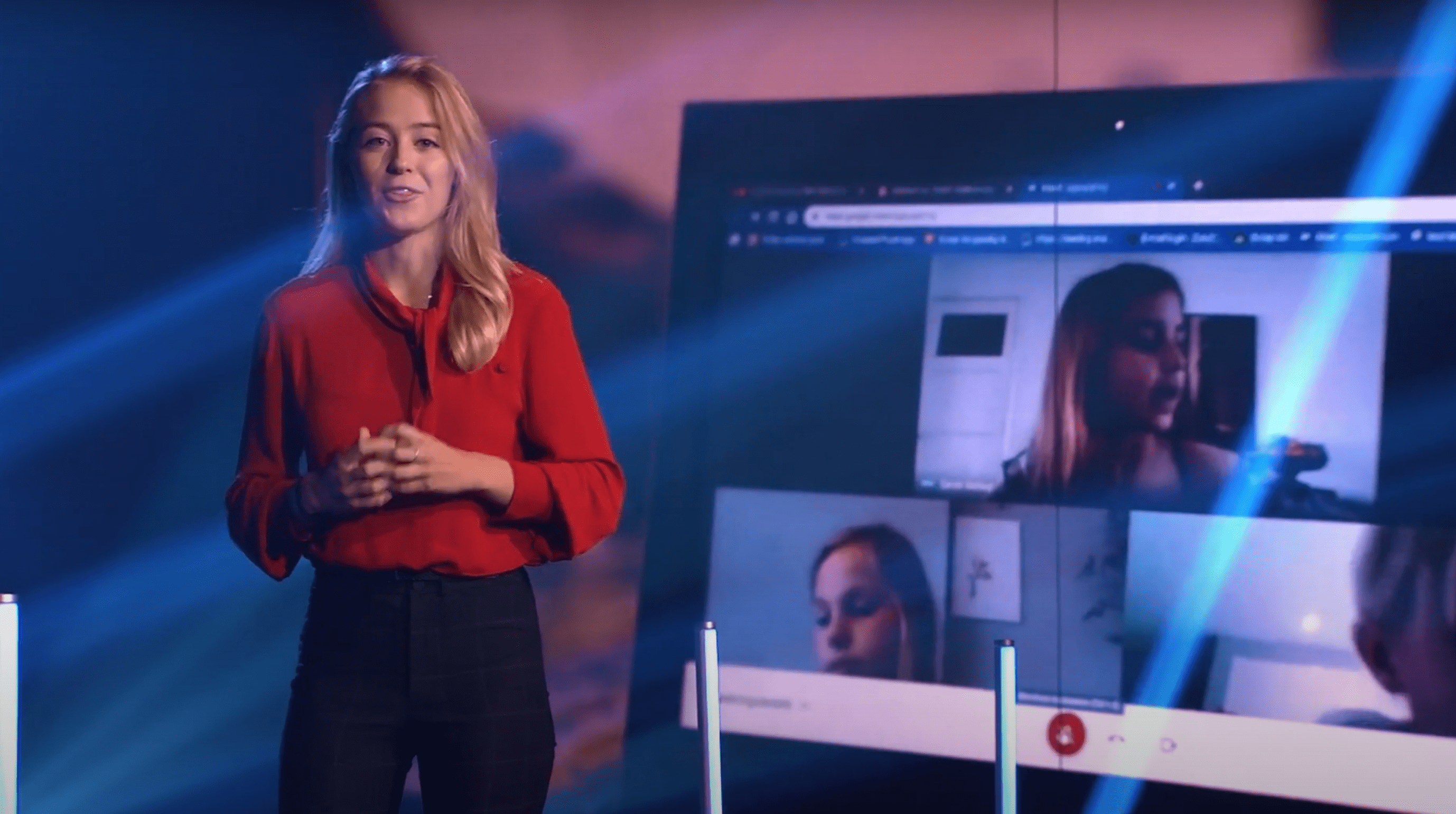 TU-student Noa Ommering tijdens de Techrede van vorig jaar. (Still: YouTube-registratie)